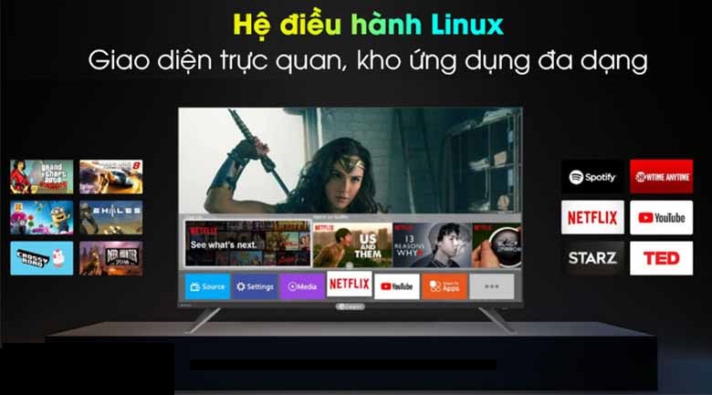 Với kích thước màn hình 58 inch, smart tivi này phù hợp với những không gian nhỏ và vừa như phòng khách, phòng làm việc…