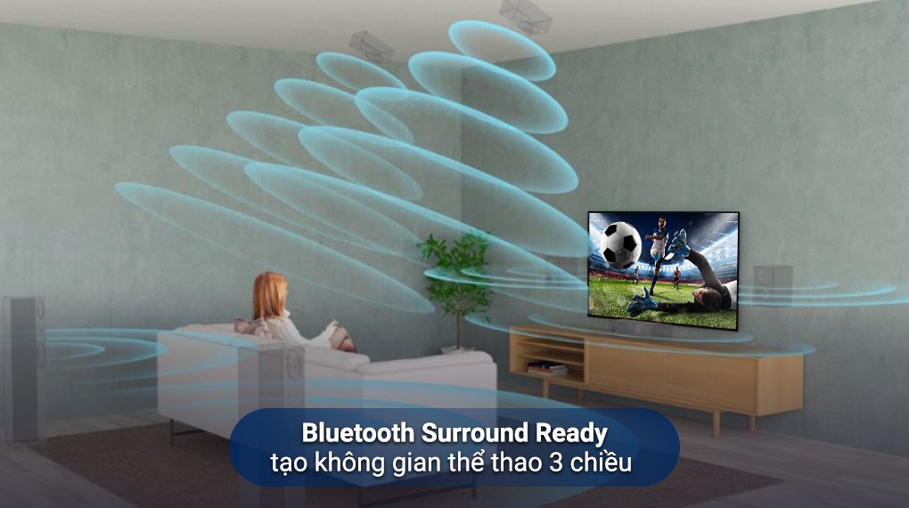 - Bluetooth Surround Ready liên kết với loa ngoài qua Bluetooth để tạo hiệu ứng bùng nổ cho âm thanh thể thao, tựa như không khí sân vân động ngay tại nhà. LG Sound Sync liên kết hoàn hảo smart tivi LG với dàn âm thanh qua kết nối Bluetooth, khuấy động không gian giải trí.