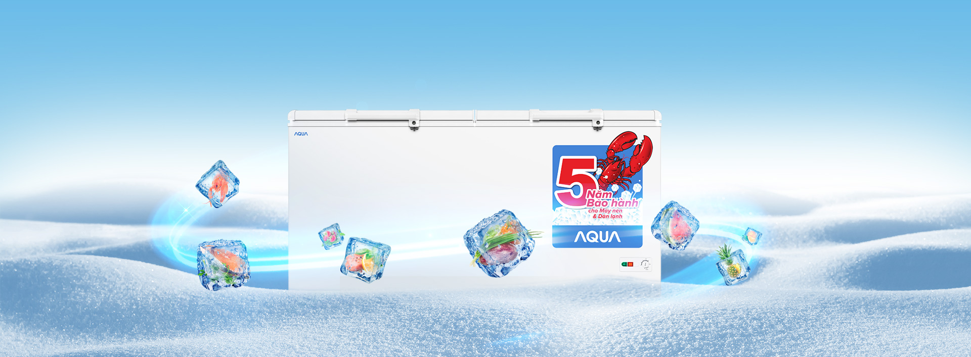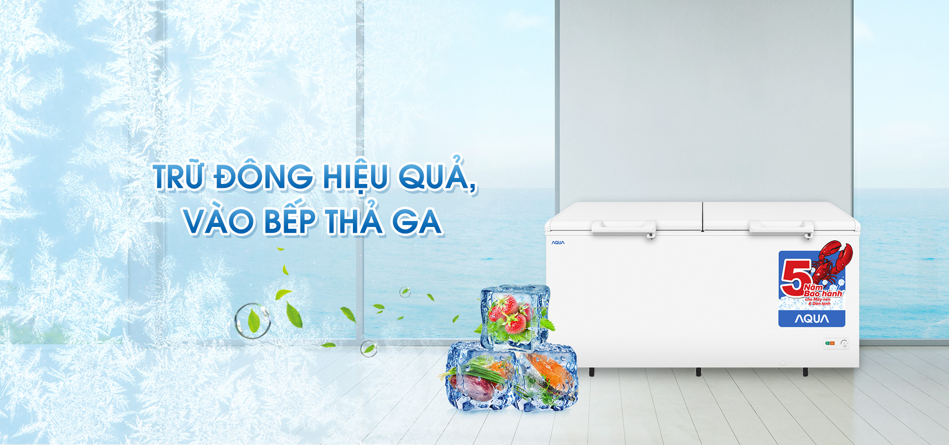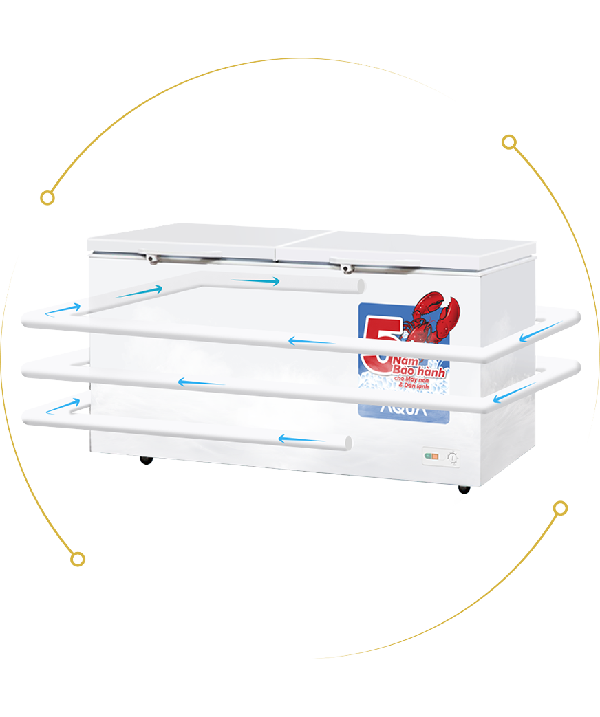 Quạt turbo biến tần: tự động điều chỉnh tốc độ thổi khí lạnh lưu thông đều khắp tủ, làm năng suất lạnh lên 30% , tủ làm đông nhanh và đồng đều hơn.