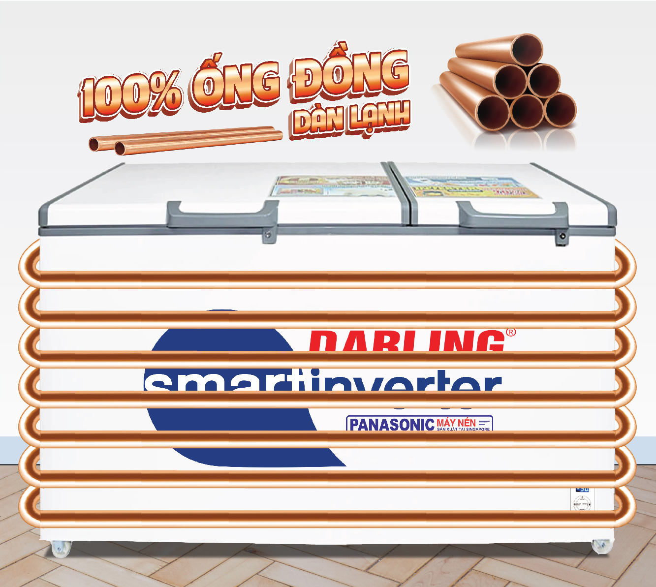 Dòng tủ đông Darling sử dụng dàn lạnh ống đồng cực kỳ bền chắc, có khả năng làm lạnh siêu nhanh, giữ nhiệt lâu nhất và tiết kiệm điện.