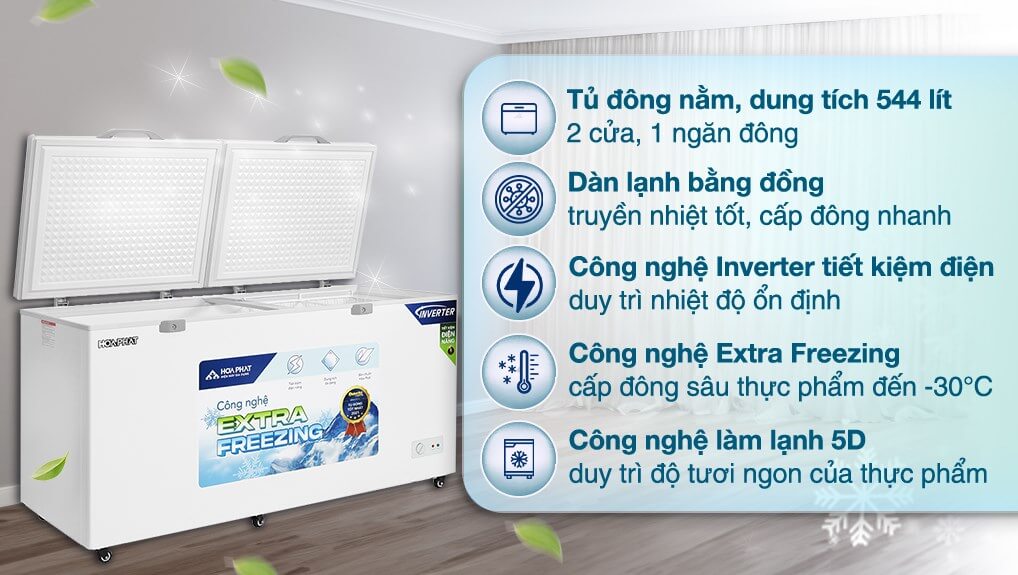 - Tủ đông Hòa Phát HPF AD6544.1 công nghệ Extra Freezing đông sâu tới -30 độ C, dàn máy nén khoẻ