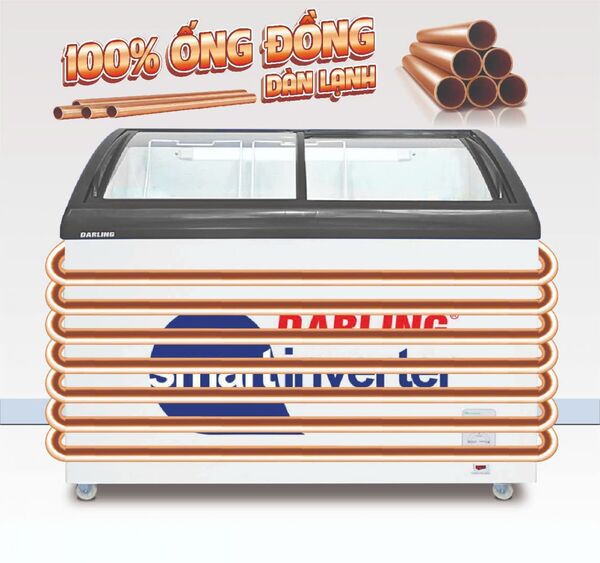 Dòng tủ kem Darling sử dụng dàn lạnh ống đồng cực kỳ bền chắc, có khả năng làm lạnh siêu nhanh, giữ nhiệt lâu nhất và tiết kiệm điện.