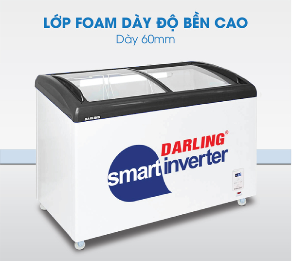 Lớp Foam dày được trang bị bên trong lòng tủ kem Darling giúp giữ lạnh tốt, cách nhiệt hiệu quả và giảm thất thoát hơi lạnh.