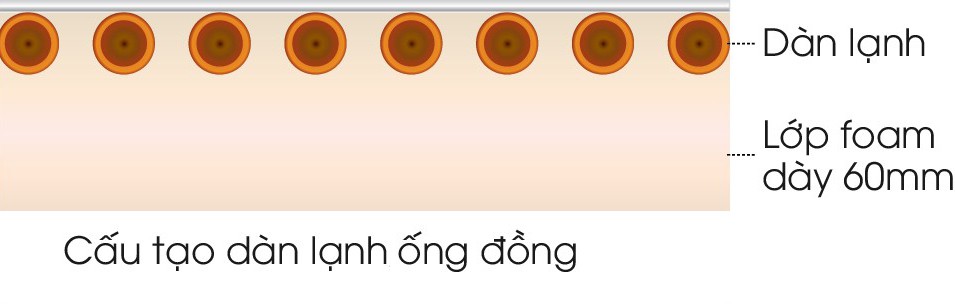 Tủ đông cấu tạo dàn lạnh làm từ ống đồng cực kỳ bền chắc.
