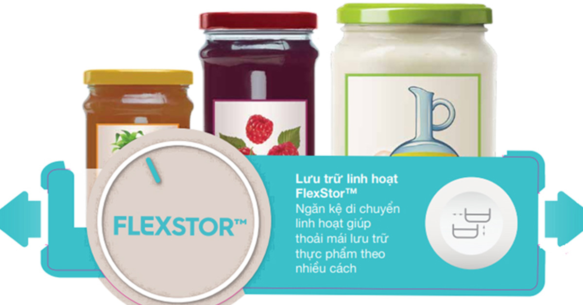 Tủ lạnh Electrolux sử dụng ngăn kệ linh động FlexStor giúp bạn dễ dàng điều chỉnh để có thể thoải mái lưu trữ thực phẩm theo cách của chính mình.