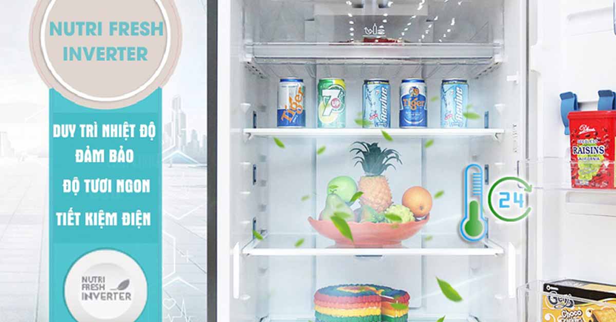 Chế độ làm lạnh Nutri Fresh Inverter mà thiết bị sở hữu vừa mang lại quá trình làm lạnh ổn định, giữ nhiệt độ bề bỉ theo thời gian để tiết kiệm điện năng tới mức tối đa, duy trì thời gian bảo quản thực phẩm ấn tượng lên tới 7 ngày.