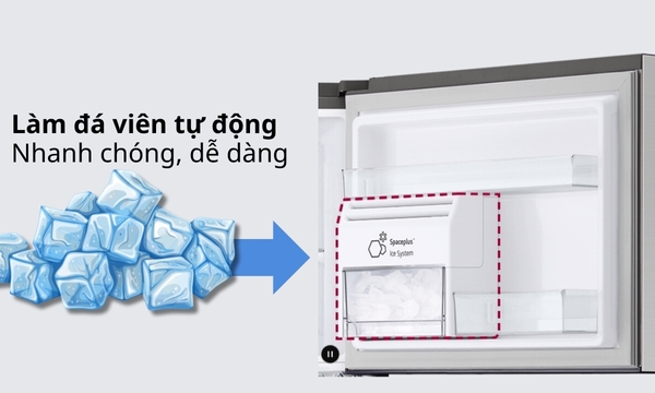 thống sẽ tự động làm đá viên và rơi xuống hộp, sẵn sàng