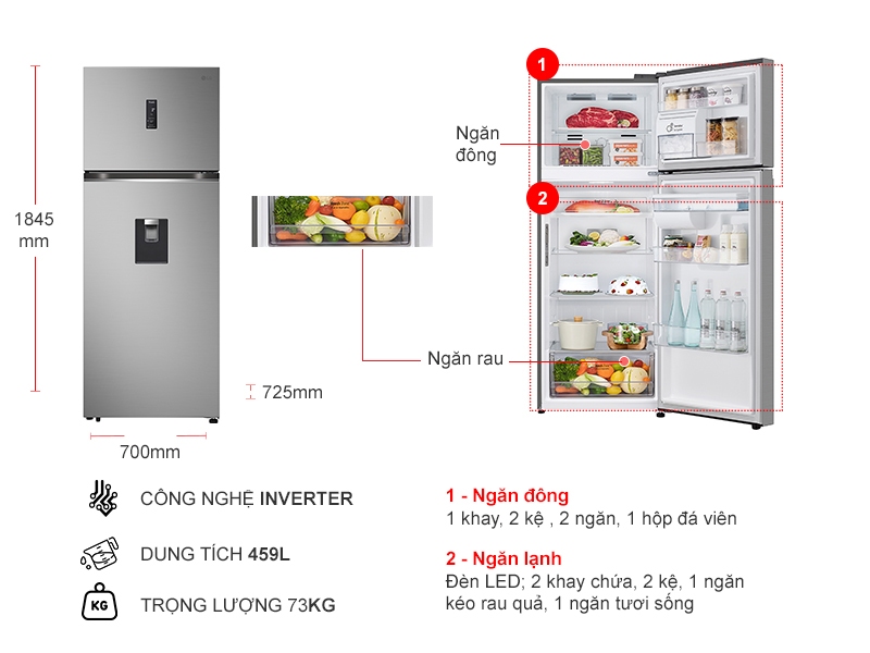 Không chỉ "tốt nước sơn", mà chiếc tủ lạnh LG này còn "tốt cả gỗ" khi tích hợp nhiều tiện ích hiện đại bên trong như: tính năng lấy nước bên ngoài nhanh chóng, ngăn Fresh 0°C Zone trữ tươi thịt cá để tiết kiệm thời gian rã đông, hệ thống làm đá tự động thông minh SpacePlus, tính năng kết nối Wifi điều khiển từ xa bằng Smartphone, công nghệ Inverter tiết kiệm điện,... Và nhiều tiện ích khác đợi bạn mua về để tận hưởng trọn vẹn các tiện nghi.