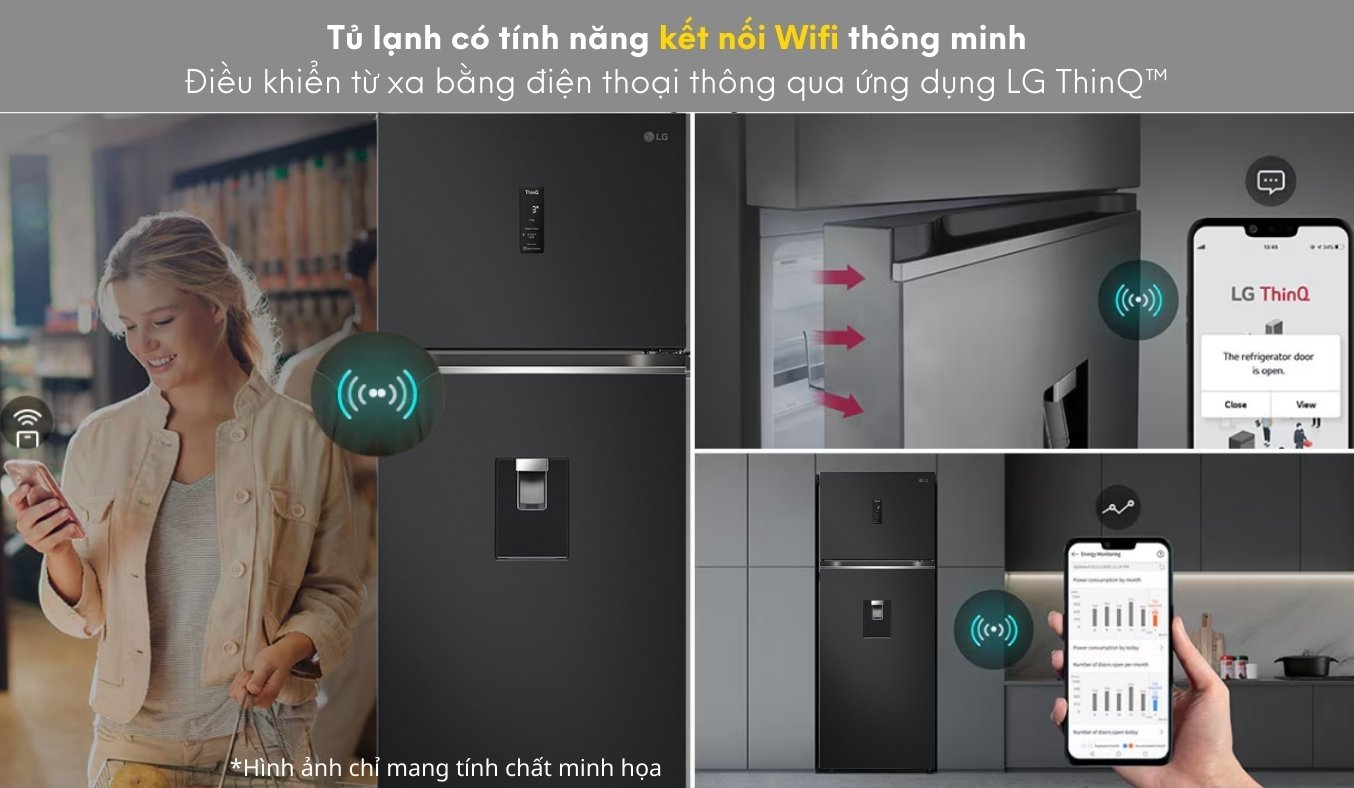 Tủ lạnh LG Inverter 459 lít LTD46BLMA hỗ trợ tính năng kết nối Wifi để bạn có thể kết nối tủ lạnh với điện thoại thông minh của mình. Sau đó, bạn hoàn toàn nắm quyền năng điều khiển thiết bị miễn là có điện thoại cài đặt ứng dụng LG ThinQ™ trên tay. Nhờ đó, bạn có thể điều chỉnh tăng nhiệt độ, giảm nhiệt độ, chọn các chức năng,... dễ dàng mà không cần đến cạnh tủ lạnh nữa. Một trải nghiệm thật sự tiện nghi và hiện đại!