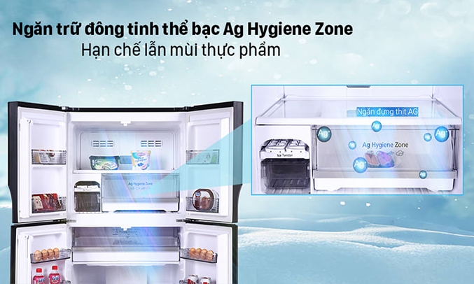 Ngăn đông Ag Hygiene Zone có các tinh thể bạc giúp loại