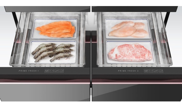 Tủ lạnh trang bị 2 ngăn đông mềm Prime Fresh tách biệt với tổng dung tích lớn lên đến 68L. Ngăn này dùng để trữ các loại thực phẩm tươi sống như thịt, cá, hải sản… Quá trình cấp đông mềm trong ngăn Prime Fresh với nhiệt độ chuẩn -3°C không làm thực phẩm đông cứng đến tận lõi, làm phá vỡ cấu trúc của thực phẩm; mà chúng chỉ tạo một lớp băng mỏng bao phủ bề mặt để kéo dài sự tươi ngon lên đến 7 ngày.