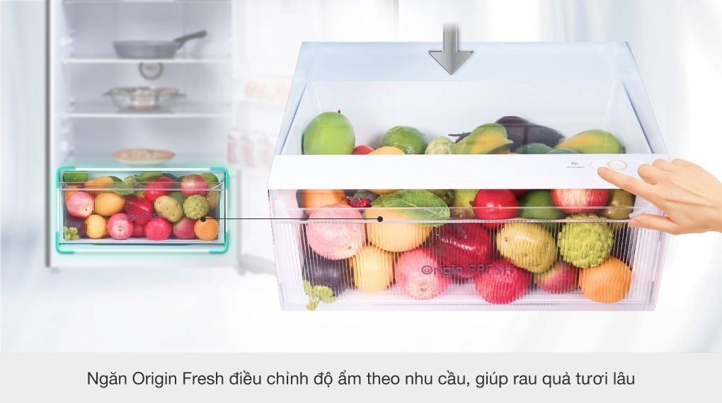 Ngăn Origin Fresh sẽ giúp nhóm thực phẩm rau củ duy trì và cân bằng được độ ẩm, nhằm giảm thiểu tình trạng héo hoặc úng trong thời gian bảo quản, phù hợp cho những gia đình thường xuyên sử dụng rau củ trong tuần.
