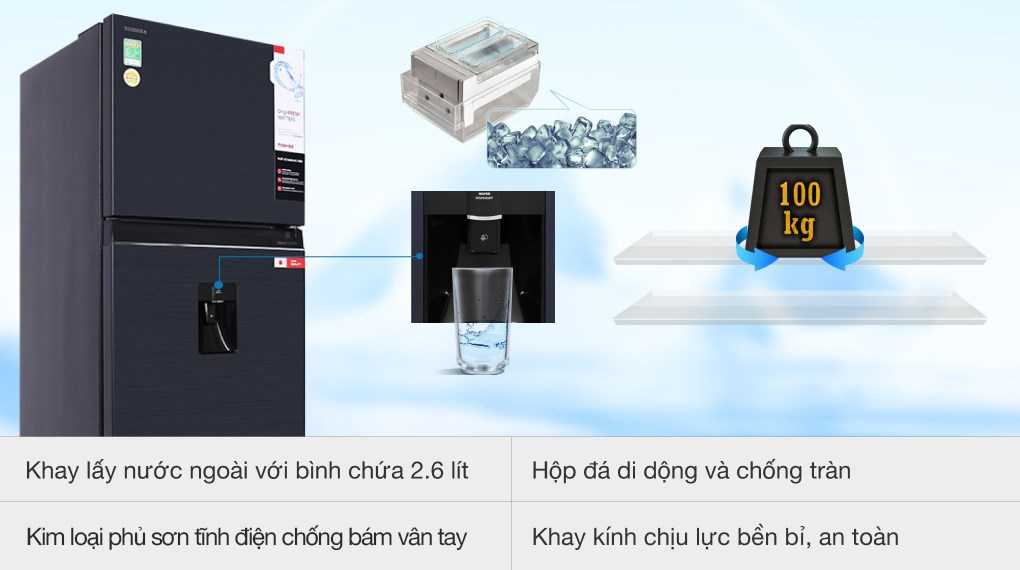Không cần phải thao tác nhiều công đoạn như mở cửa tủ và mở nắp chai, bạn có thể lấy nước bên ngoài ở phía cánh cửa tủ lạnh Toshiba Inverter 407 lít GR-RT535WE-PMV(06)-MG, để thưởng thức được ngay ly nước lọc mát lạnh vào những ngày trời oi bức.
