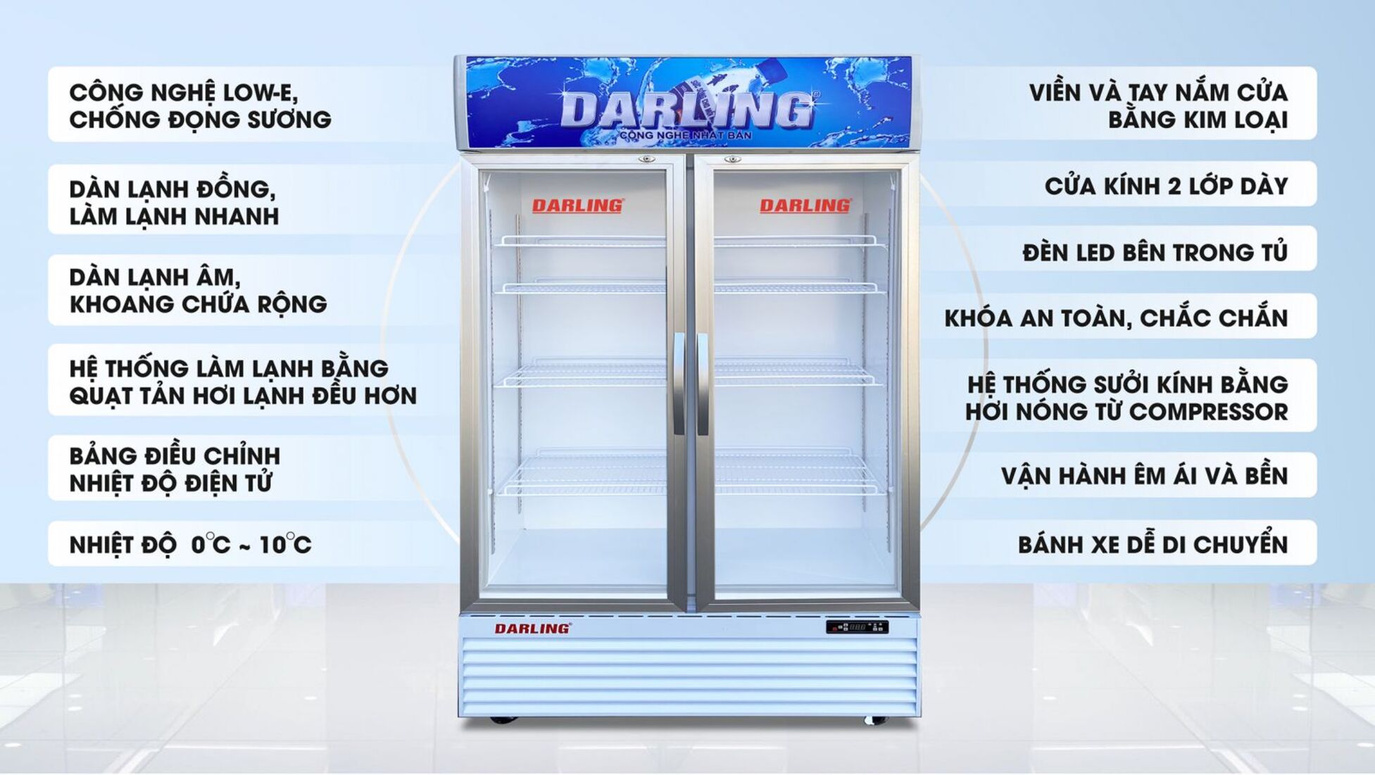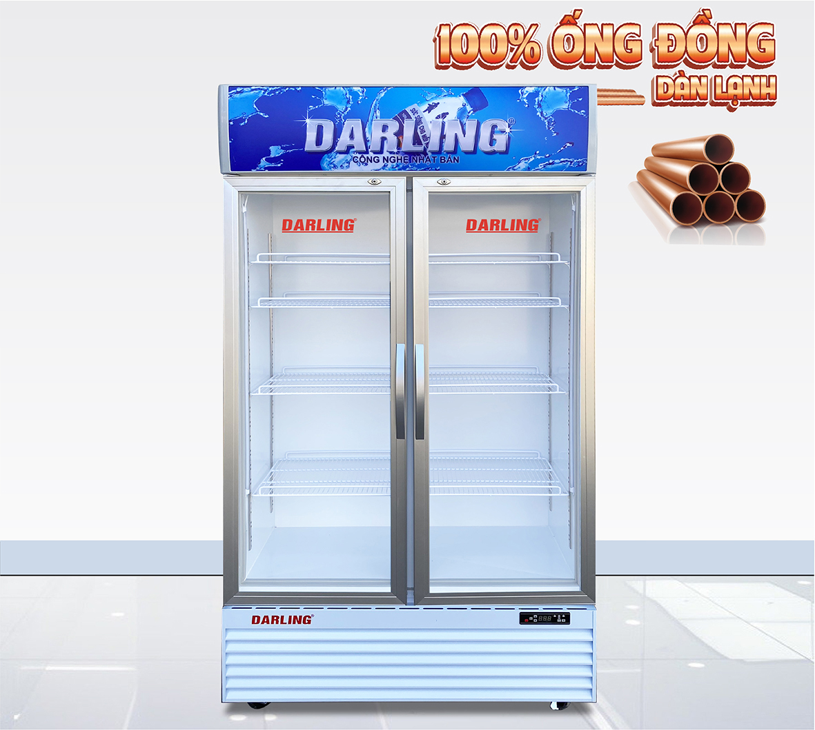 Dòng tủ mát Darling sử dụng dàn lạnh ống đồng cực kỳ bền chắc, có khả năng làm lạnh siêu nhanh, giữ nhiệt lâu nhất và tiết kiệm điện.