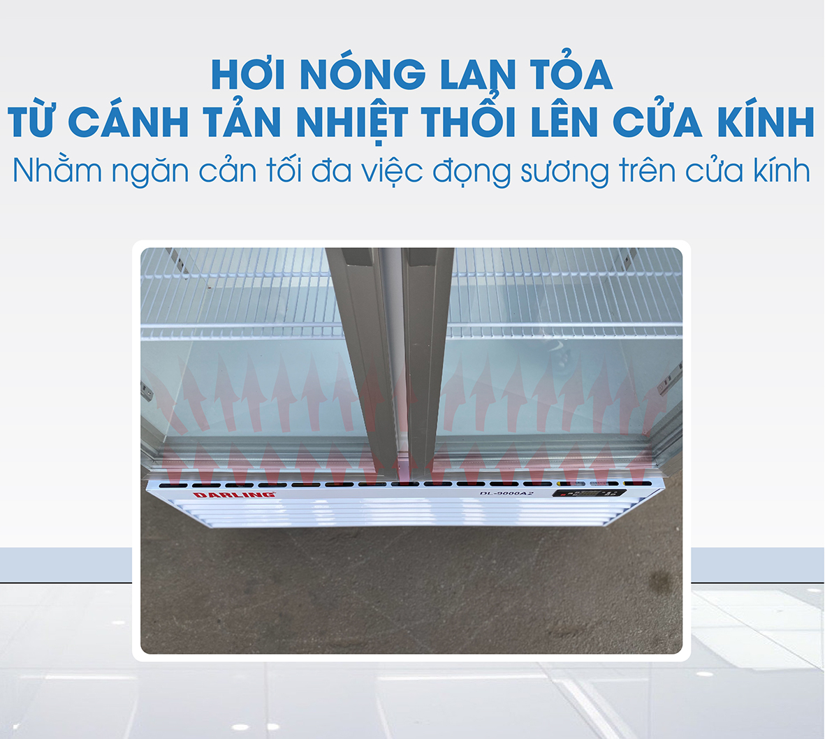 Hơi nóng lan tỏa từ cánh tản nhiệt thổi lên cửa kính, nhằm ngăn cản tối đa việc đọng sương trên cửa kính