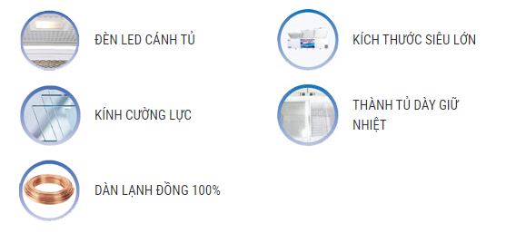 Tủ mát trưng bày có cửa kính hai lớp làm bằng chất liệu chịu lực, hệ thống sấy kính Low-E Film tiên tiến. Hệ thống đèn LED chiếu sáng dọc bên hông tủ.