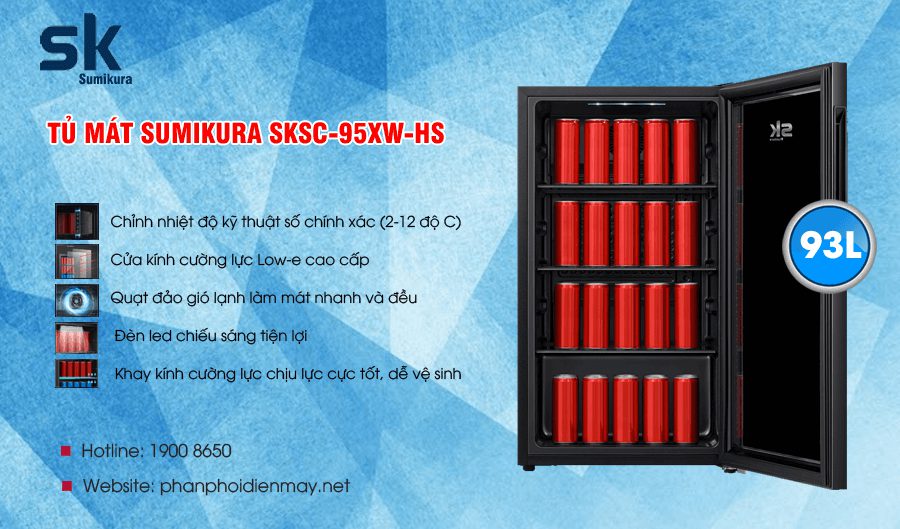 SKSC-95XW-HS cho dải nhiệt độ rộng từ 2 đến 12 độ C với chỉnh nhiệt kỹ thuật số tiên tiến